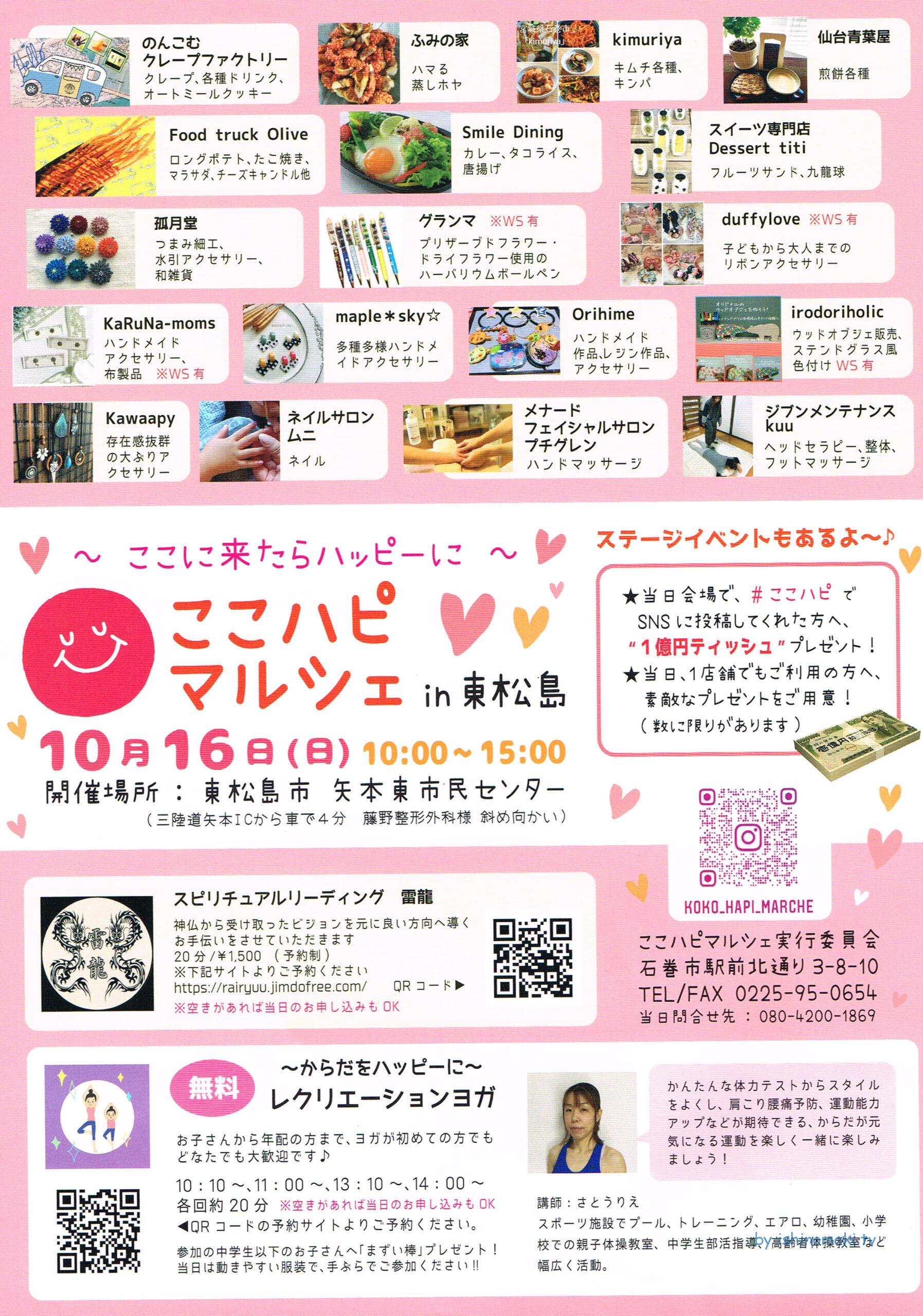 10月15日に二俣マルシェが開催されるようです イベント X Facebook はてブ LINE Pinterest コピー 2022.10.06 11月19日、12月17日にも開催予定のようです。 場所:石巻市大森的場(コイン乾燥機駐車場) 時間:10時~14時